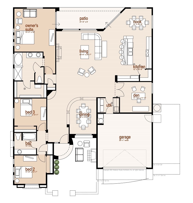 52’ wide | 66’ deep | 2439 sq. ft. | 3(4)(5) beds | 2 (3)baths | 3(4) cars