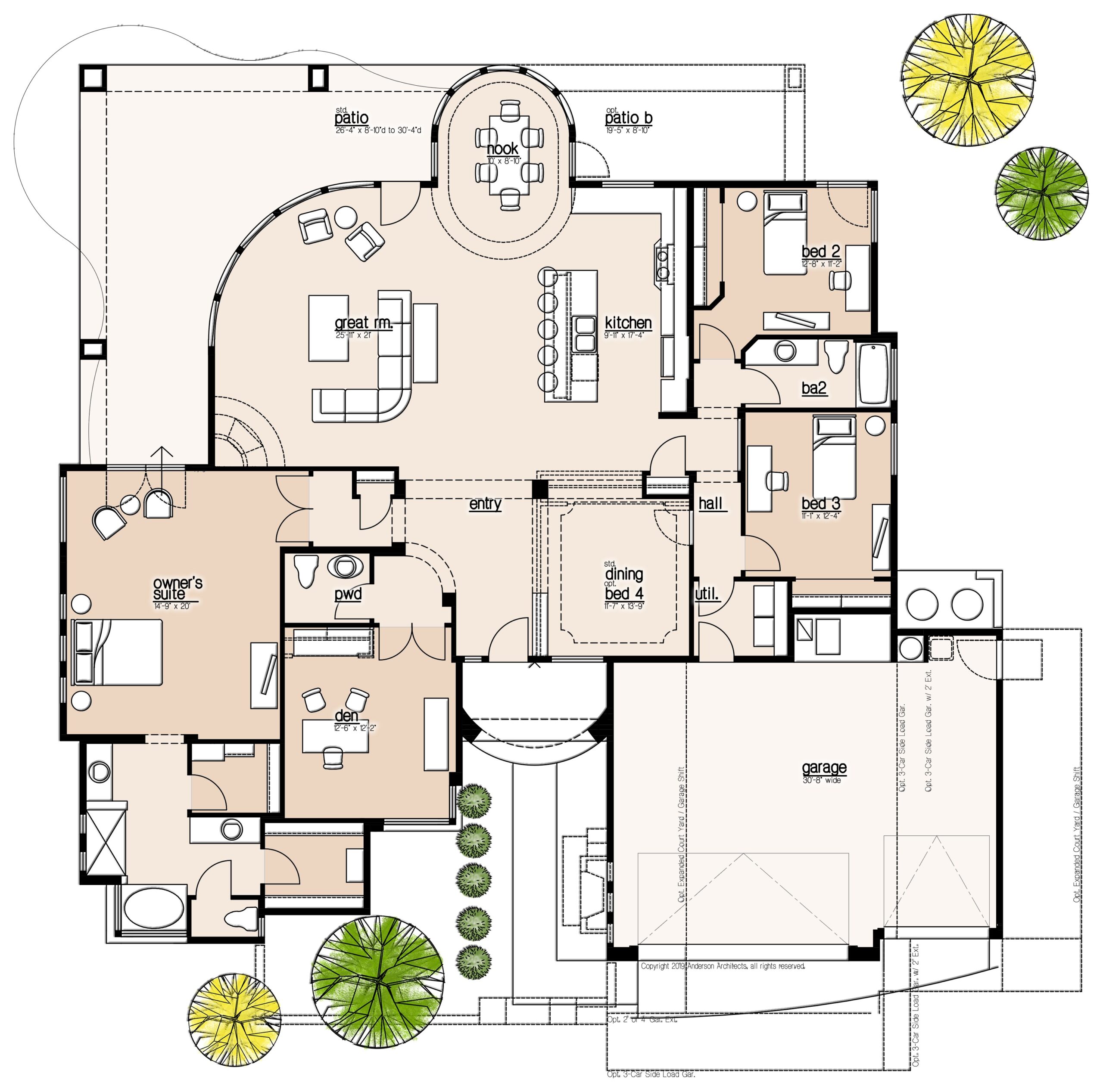 Single Family Home, Single Story, 3 Bedroom, Dining Room, Kitchen, Great Room, Den, Nook, 3 Bath, Three Car Garage, Optional 5th Bedroom, Optional 4th Bedroom, Lot Premium Not Included
