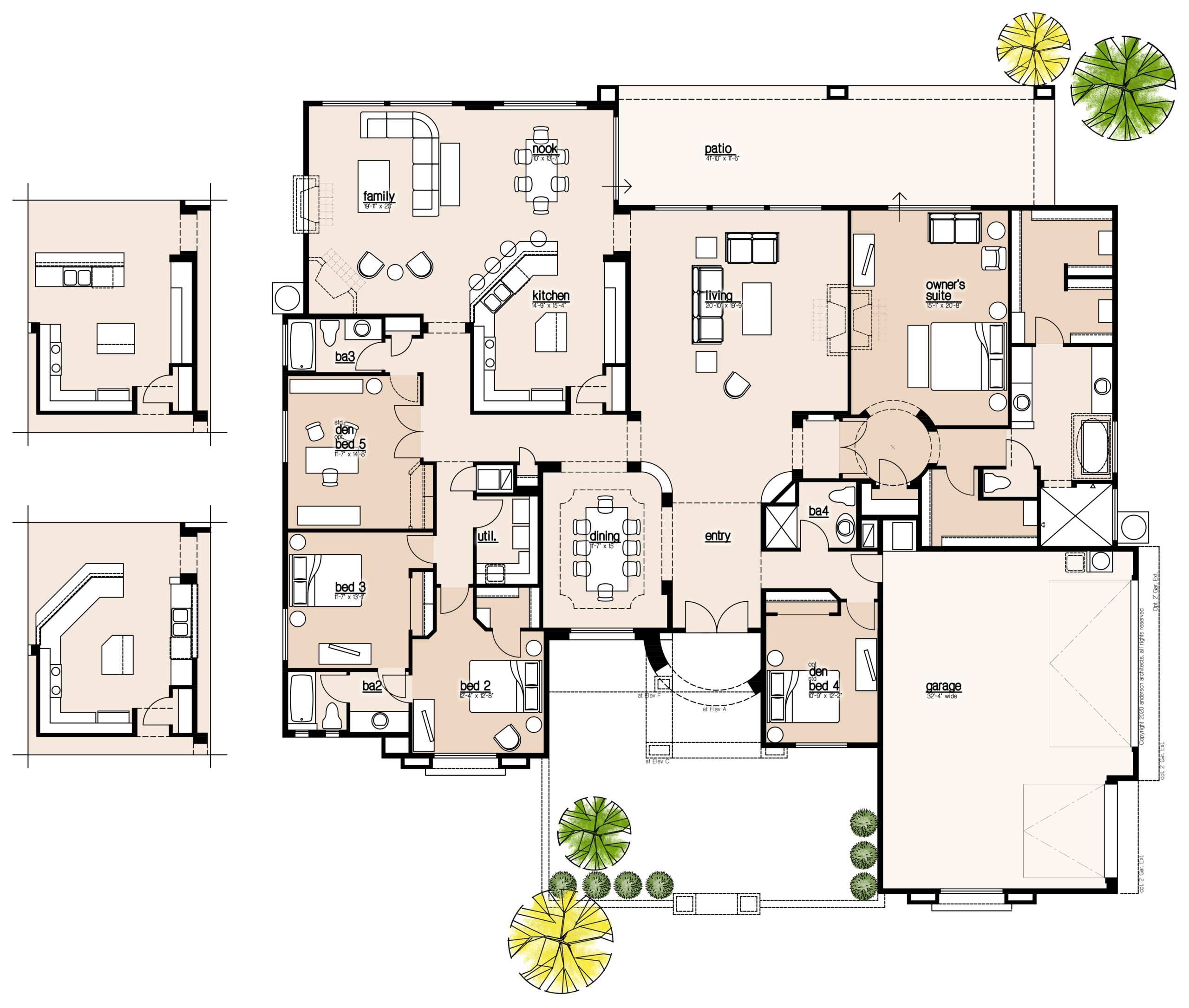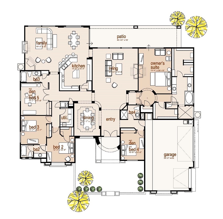 76’ wide | 72’ deep | 3801 sq. ft . | 3(4)(5) beds | 2.5(3)(3.5)(4) baths | 3(4) cars